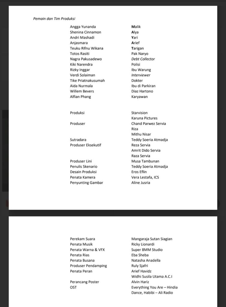 Bagaimana pasangan muda yang baru menikah menghadapi kesulitan ekonomi. Teddy Soeria Atmadja membungkus permasalahan ini dengan sudut pandang yang baru. Karakter Malik dan Alya juga menjadi representasi yang bisa kita ambil pelajaran untuk saling memberi dan saling membangun sebagai pasangan. Apa yang akan kamu lakukan untuk kebahagiaan pasanganmu?” ujar produser Chand Parwez Servia.