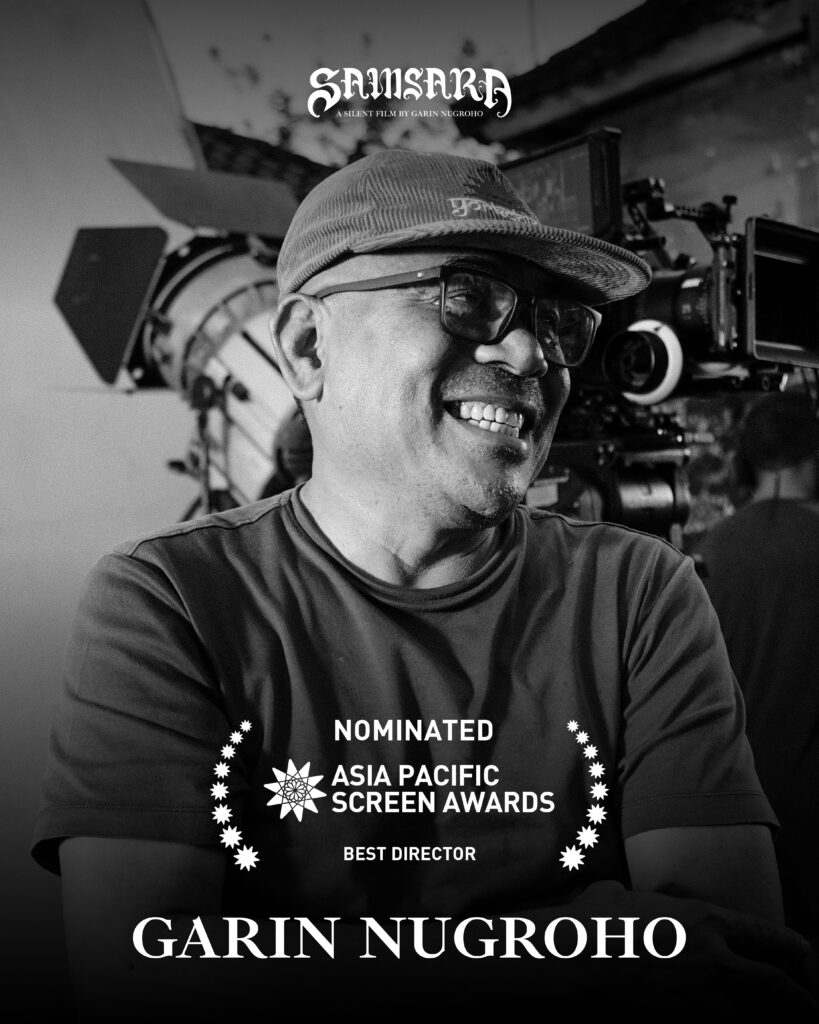 Jakarta, 15 Oktober 2025 — Samsara, film karya Garin Nugroho, mendapat tiga nominasi pada Asia Pacific Screen Awards ke-18 yang akan digelar pada tanggal 27 November mendatang di Goaldcoast, Australia. Samsara merupakan film bisu berlatar sejarah dan budaya Bali yang produksi Cineria Films bekerja sama dengan Esplanade –