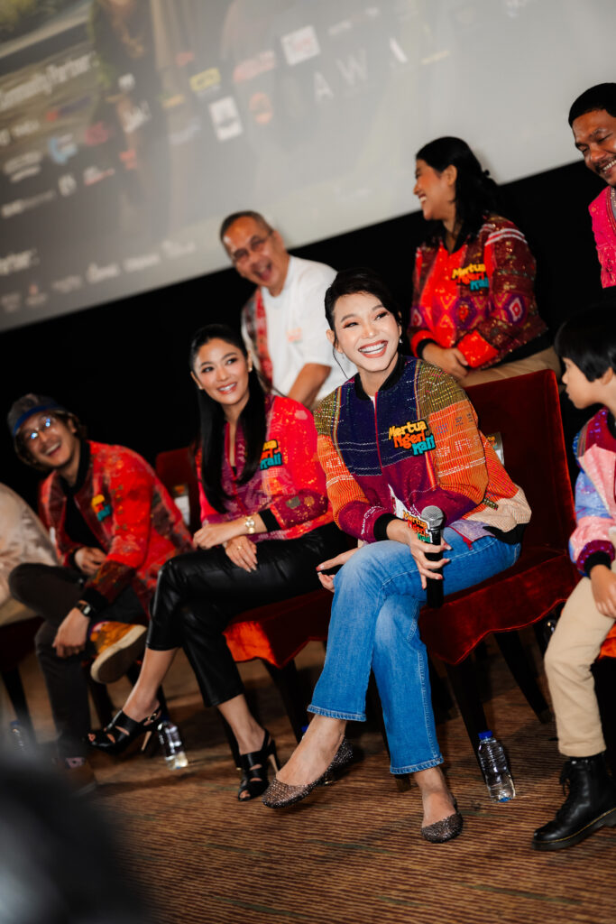 Sementara itu, Bunda Corla dengan gaya khasnya yang spontan dan heboh, menyampaikan kegembiraannya melakukan debut sebagai aktris film Indonesia. Quote ikoniknya langsung mengundang gelak tawa penonton dan awak media. “Aduh ya ampun sayang, Bunda tuh senang sekali ya bisa main film di sini. Seru nian! Bunda bisa marah-marah, bisa cerewet, bisa ngeriii kali tapi tetep cantik ya kan. Main sama keluarga di layar tuh tantangan tapi Bunda enjoy betul! Kalian harus nonton yaaa, jangan bikin Bunda malu di depan keluarga besar!” serunya.